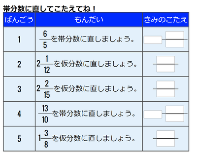 □□□□□□□□□□□□□□□□□□□□□□□□□□下の図のような形で帯分数と仮分数の変更を練習できますよ!