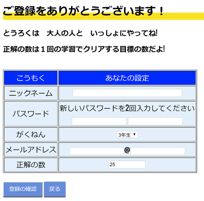 サイトの特徴は『問題がランダムに出題され』、『終わったら登録したメールに連絡が来る』