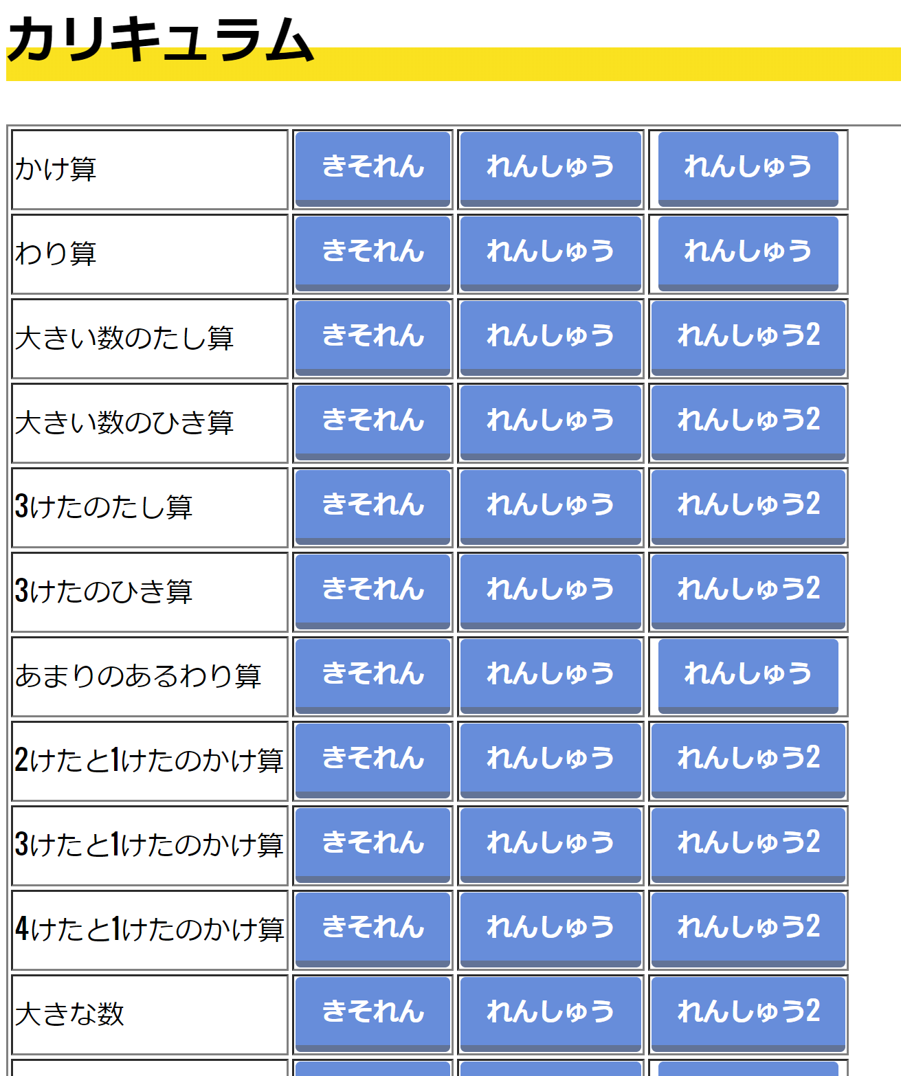 きそれん、れんしゅう、れんしゅう2に分かれていて、