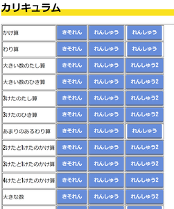 『かけざん』や『時間のたし算』などカテゴリに分かれています。