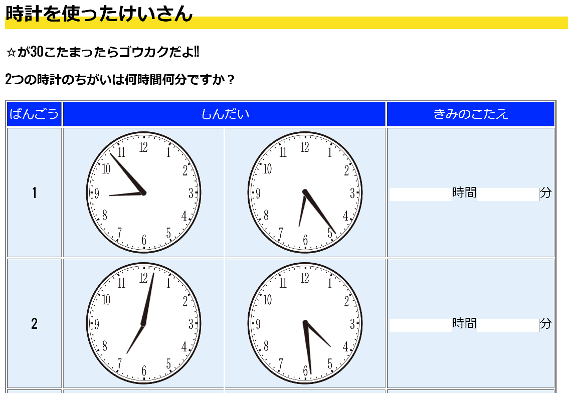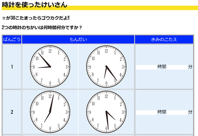 時間は1分間隔、差は3時間以内でランダムに問題が出ます。