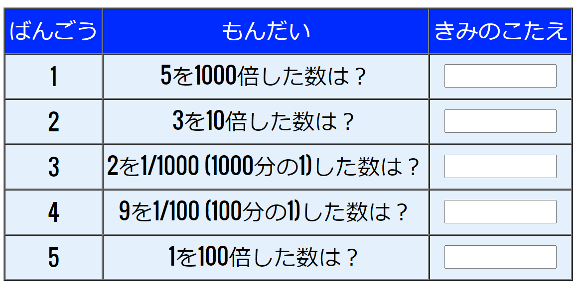 10,100,1000で掛けたり、割ったりした時の値を計算します。