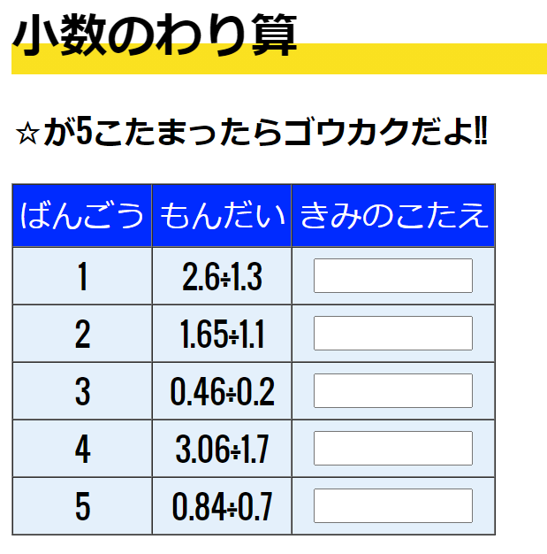 5年生の算数の2つ目は小数のわり算です!