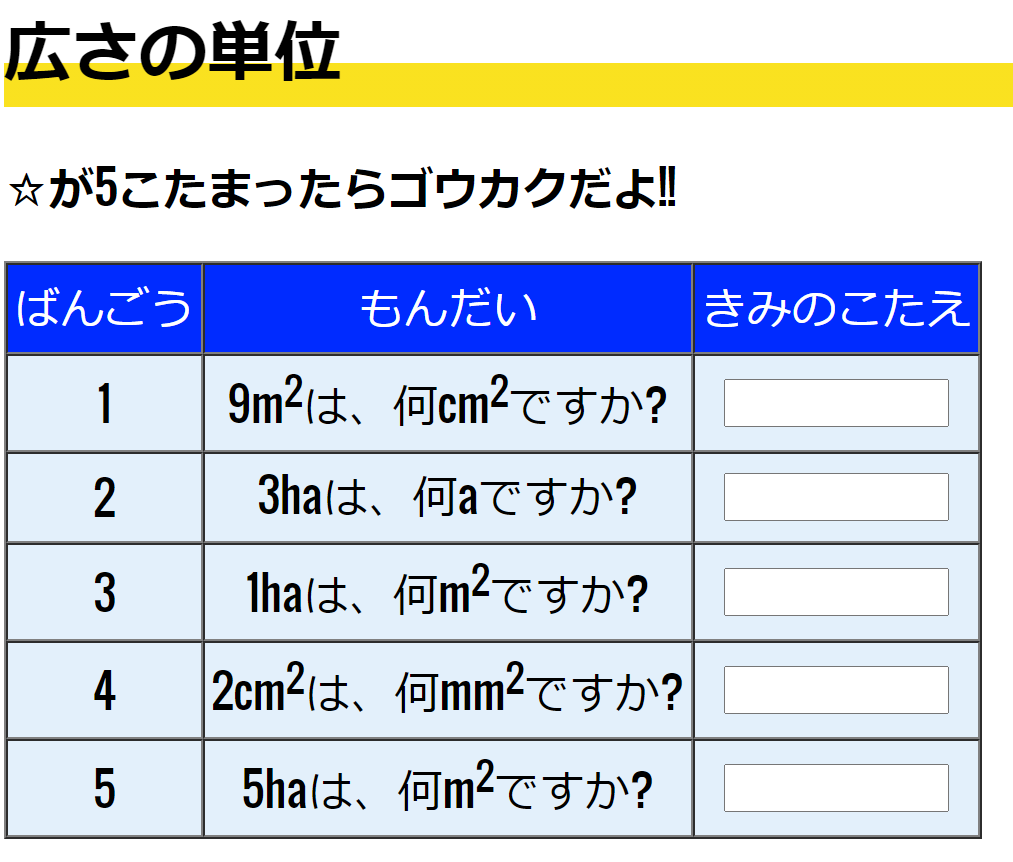 4年生の広さの単位をリリースしました。