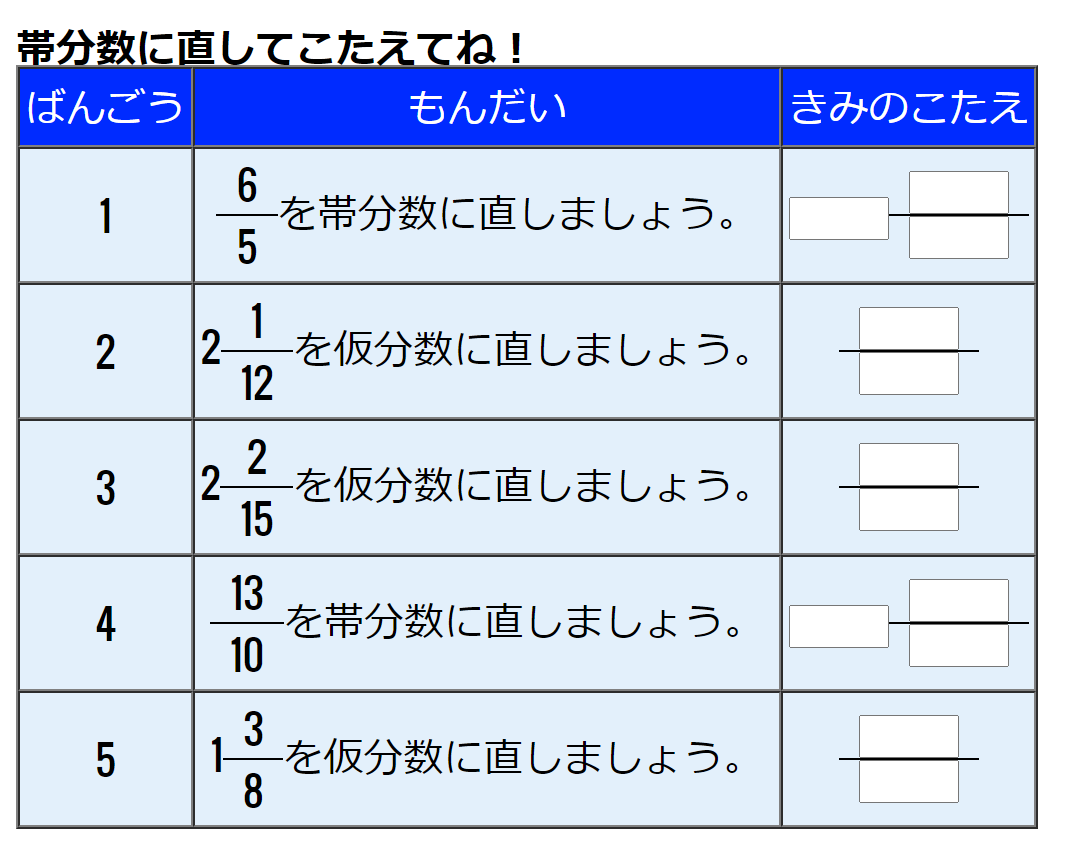 □□□□□□□□□□□□□□□□□□□□□□□□□□下の図のような形で帯分数と仮分数の変更を練習できますよ!