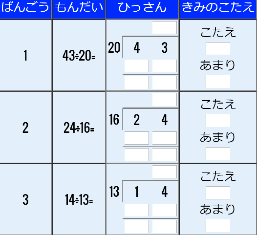 わり算は苦手になる子もいるところなので、しっかりと計算をれんしゅうして